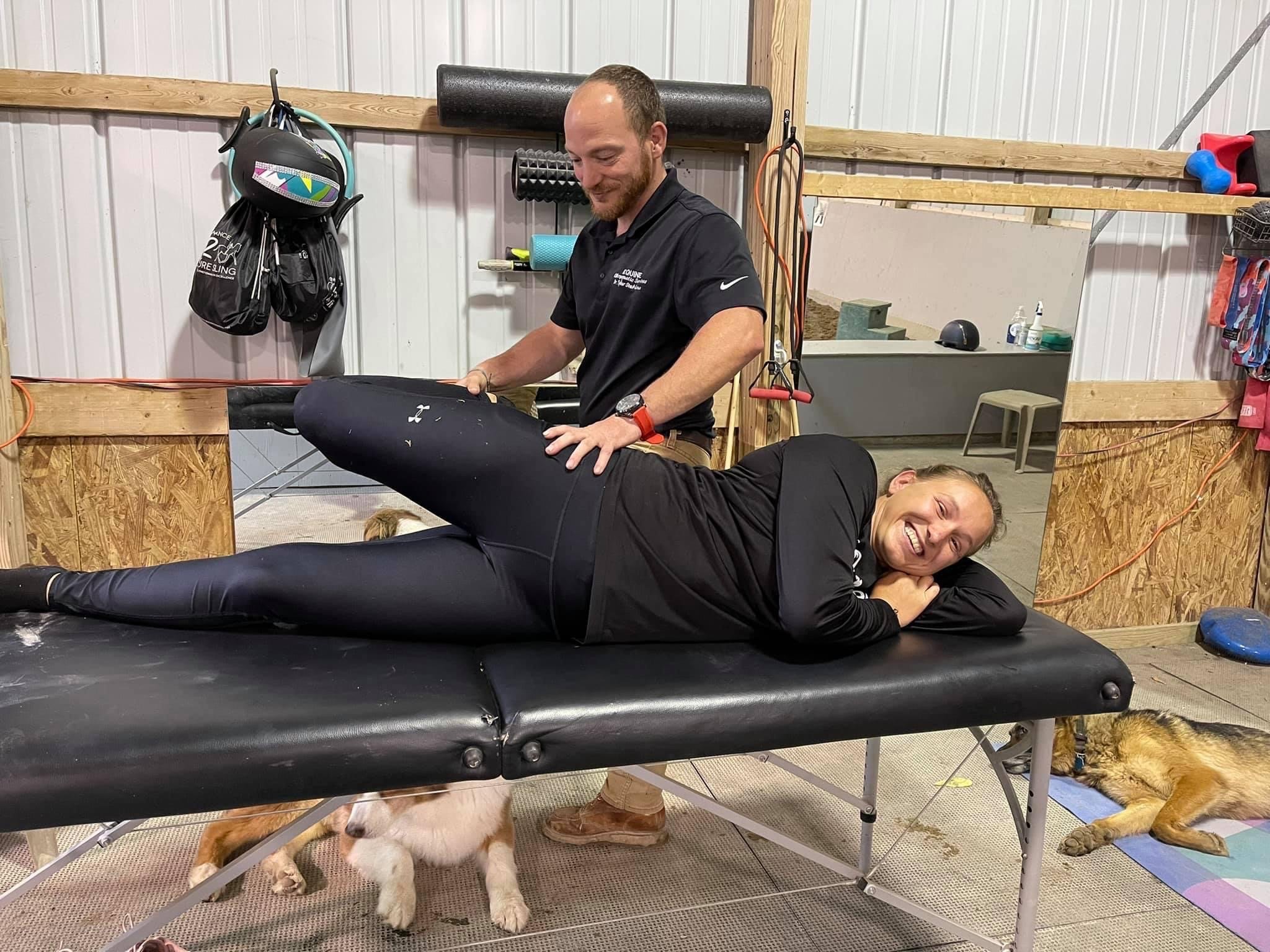 Providing chiropractic care, physical therapy treatment and/or Atheletic Performance Training at your barn/house or at our Rider Studio at Catlin Farm.